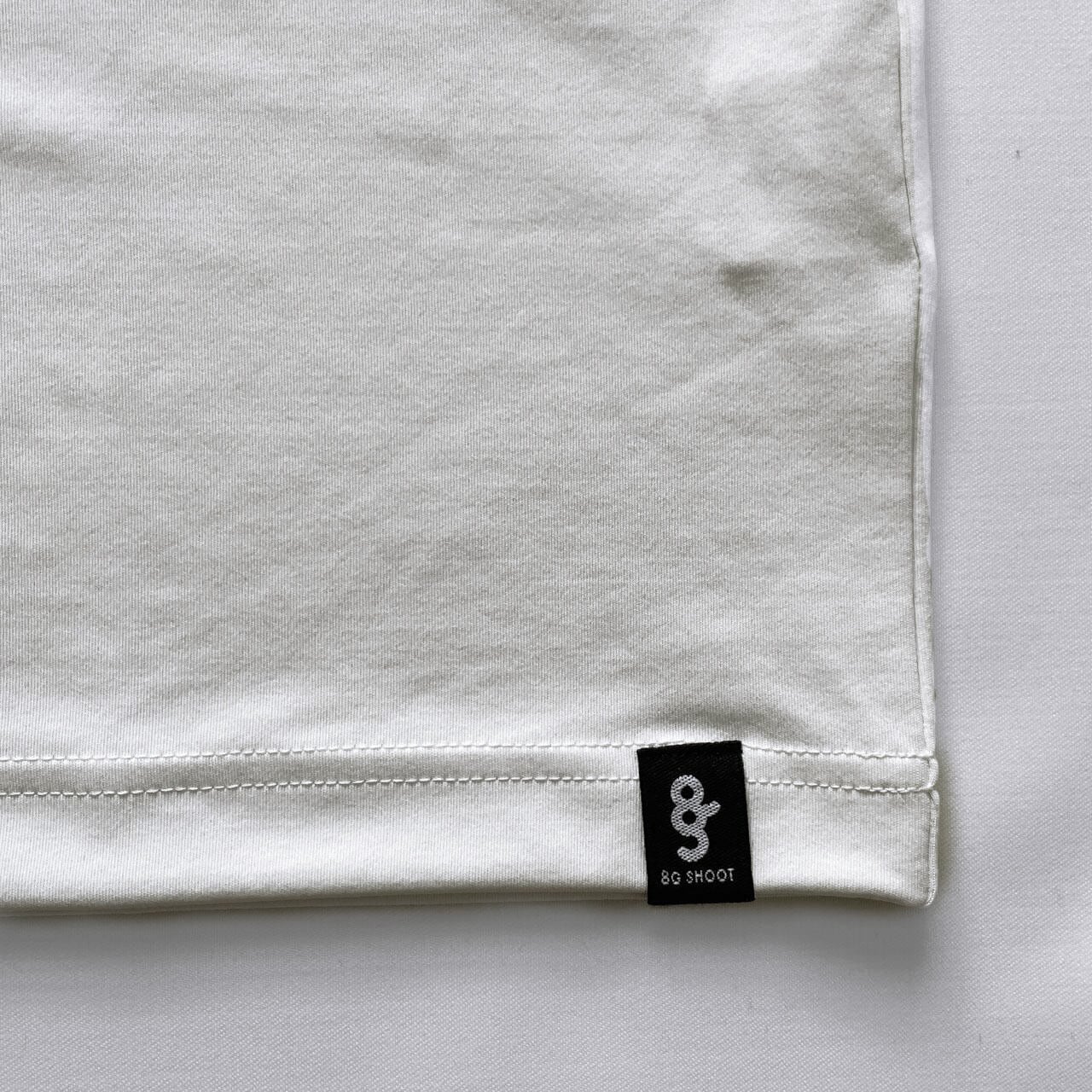 襟部分にロゴワッペン、胸元にブランドのアイコンであるロゴプリントをあしらった、8G SHOOTのベーシックアイテム。」