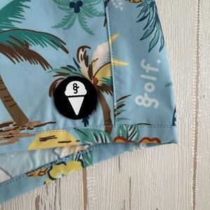 8G SHOOTオリジナルの4WAYストレッチ、UVカット機能を備えたアロハ柄素材を使用し8G SHOOTと69slamのコラボロゴワッペン、コラボネームを配したショートパンツ。