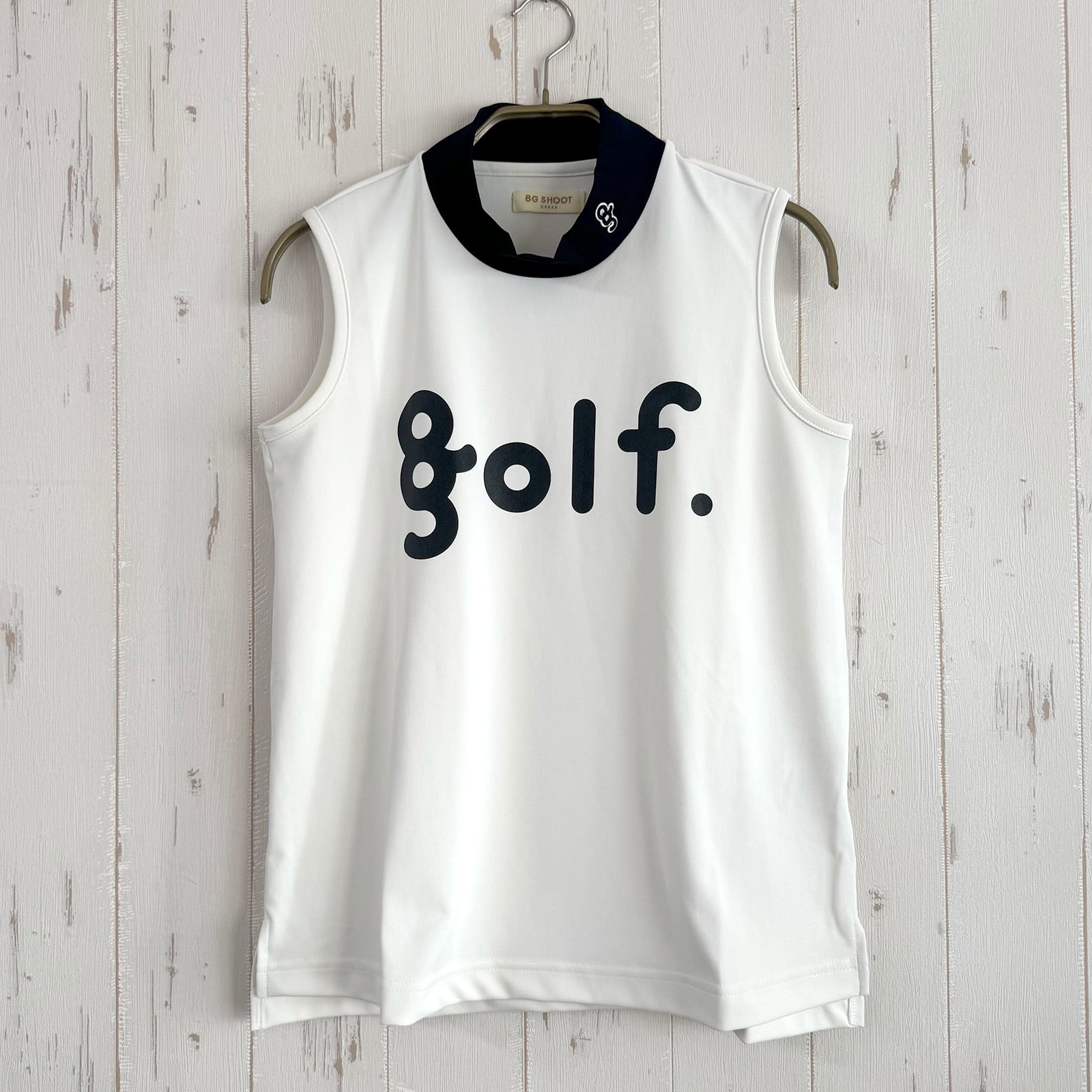 【WOMEN'S】LOGO PRINT MOCK NECK NO SLEEVE SHIRT -OFF WHITE/BLACK -