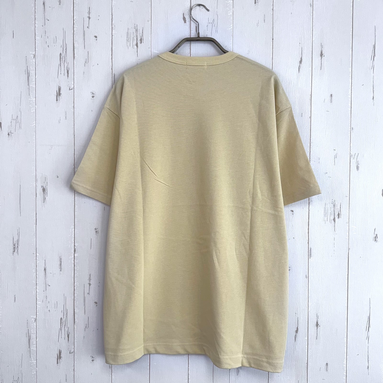 「強撚糸を引き揃えで編み立てたシャリ感のある天竺を、加工によりヴィンテージ感のあるナチュラルな風合いに仕上げた素材を使用。