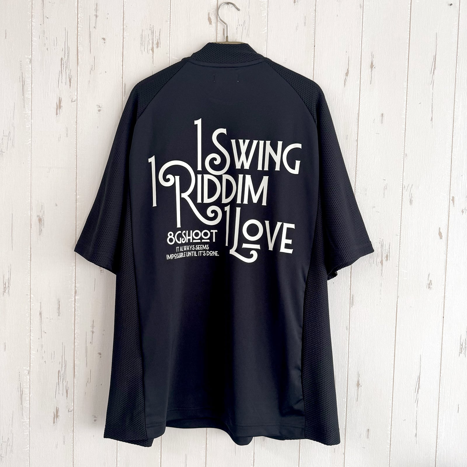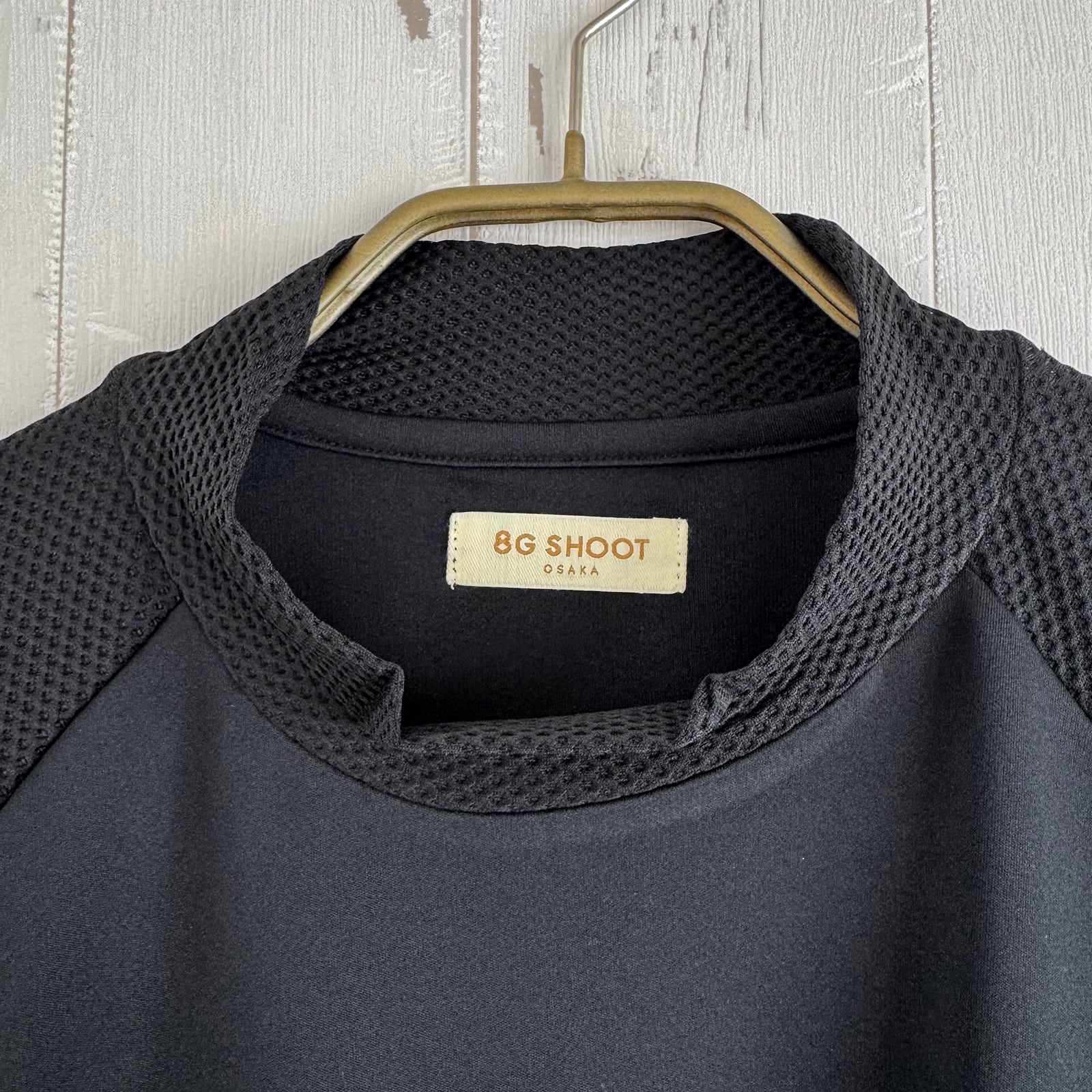 8G MESH SWITCHING MOCK NECK TEE -BLACK-