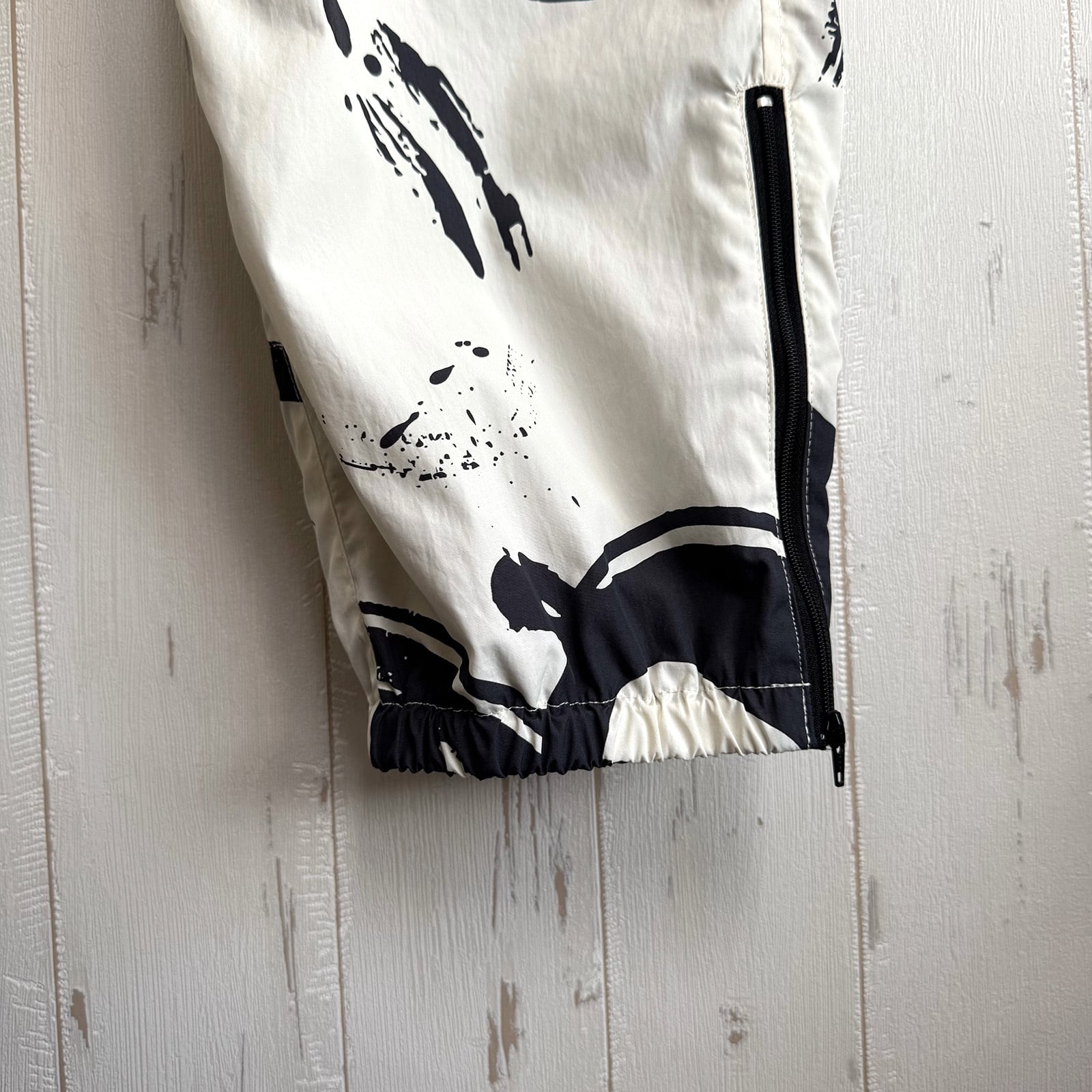 CALLIGRAPHY PATTERN NYLON PANTS -WHITE-