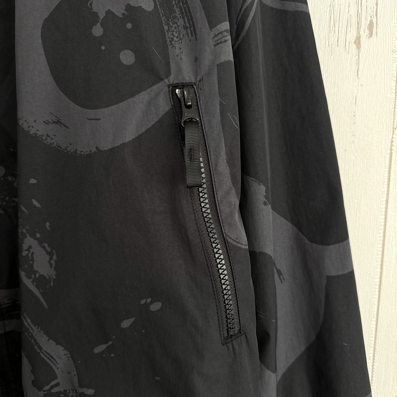 CALLIGRAPHY PATTERN NYLON JACKET -BLACK-