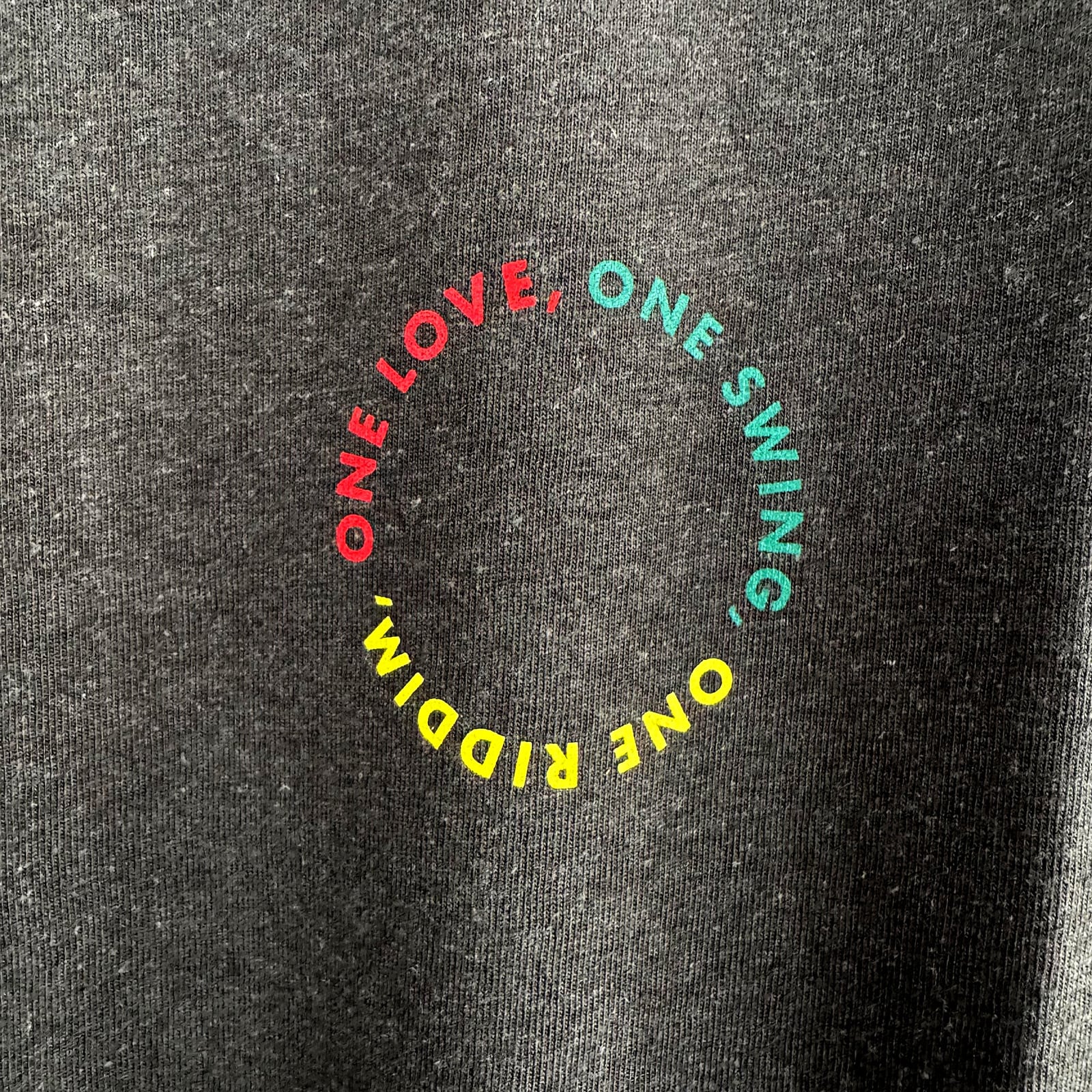 左胸にラスタカラーのサークルロゴがプリントされたシンプルな仕上がり。」