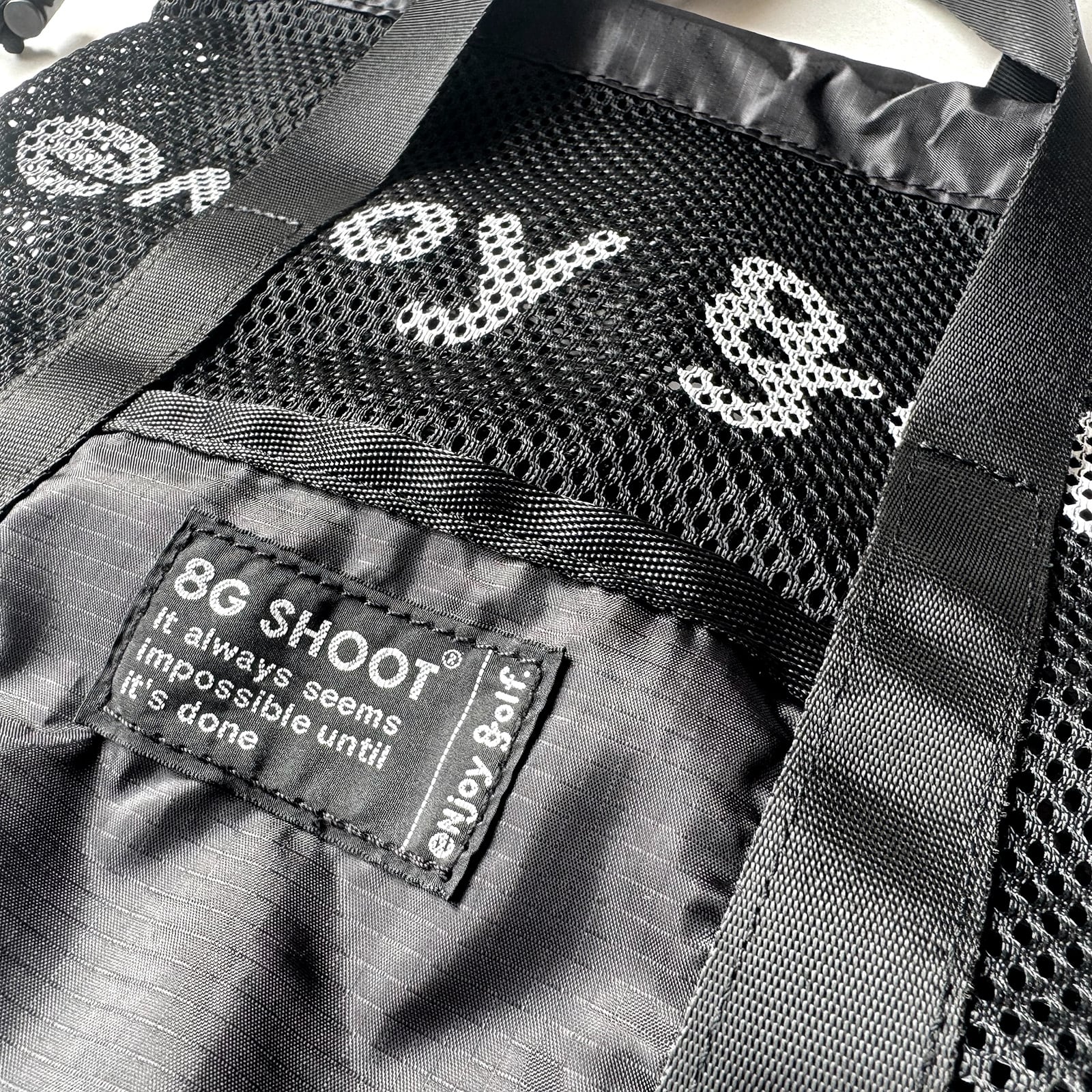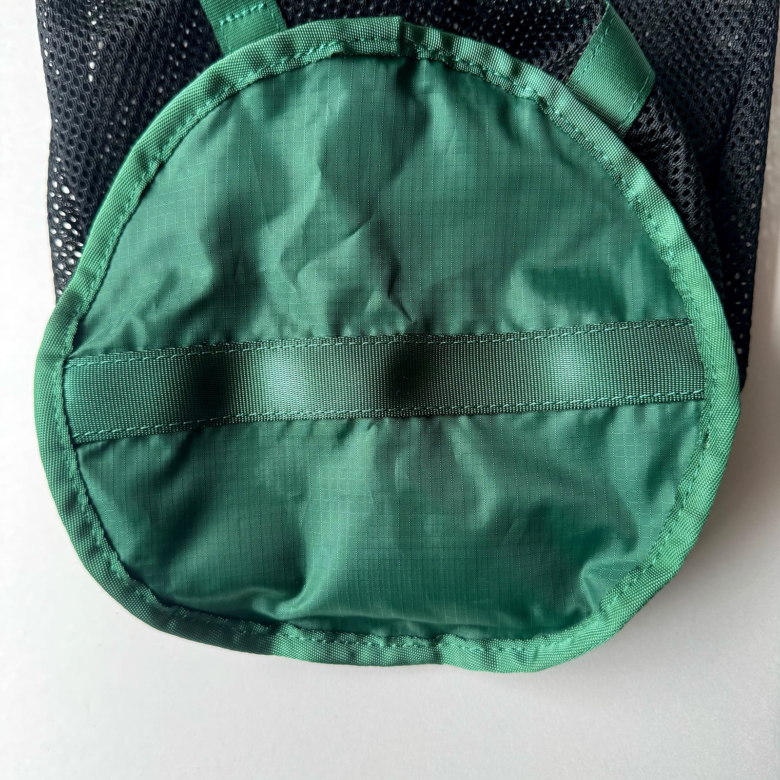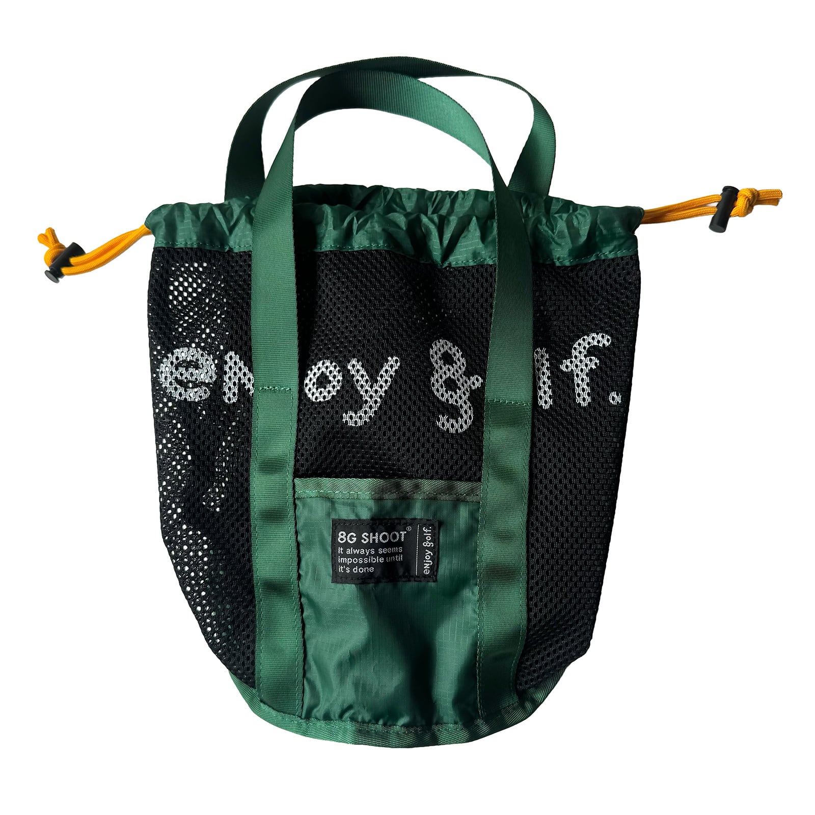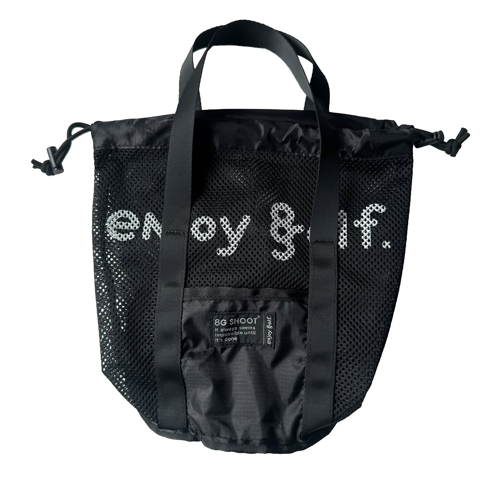 「軽量でコンパクトに畳めて持ち運び便利なメッシュ巾着バッグ。外側にポケットあり。」