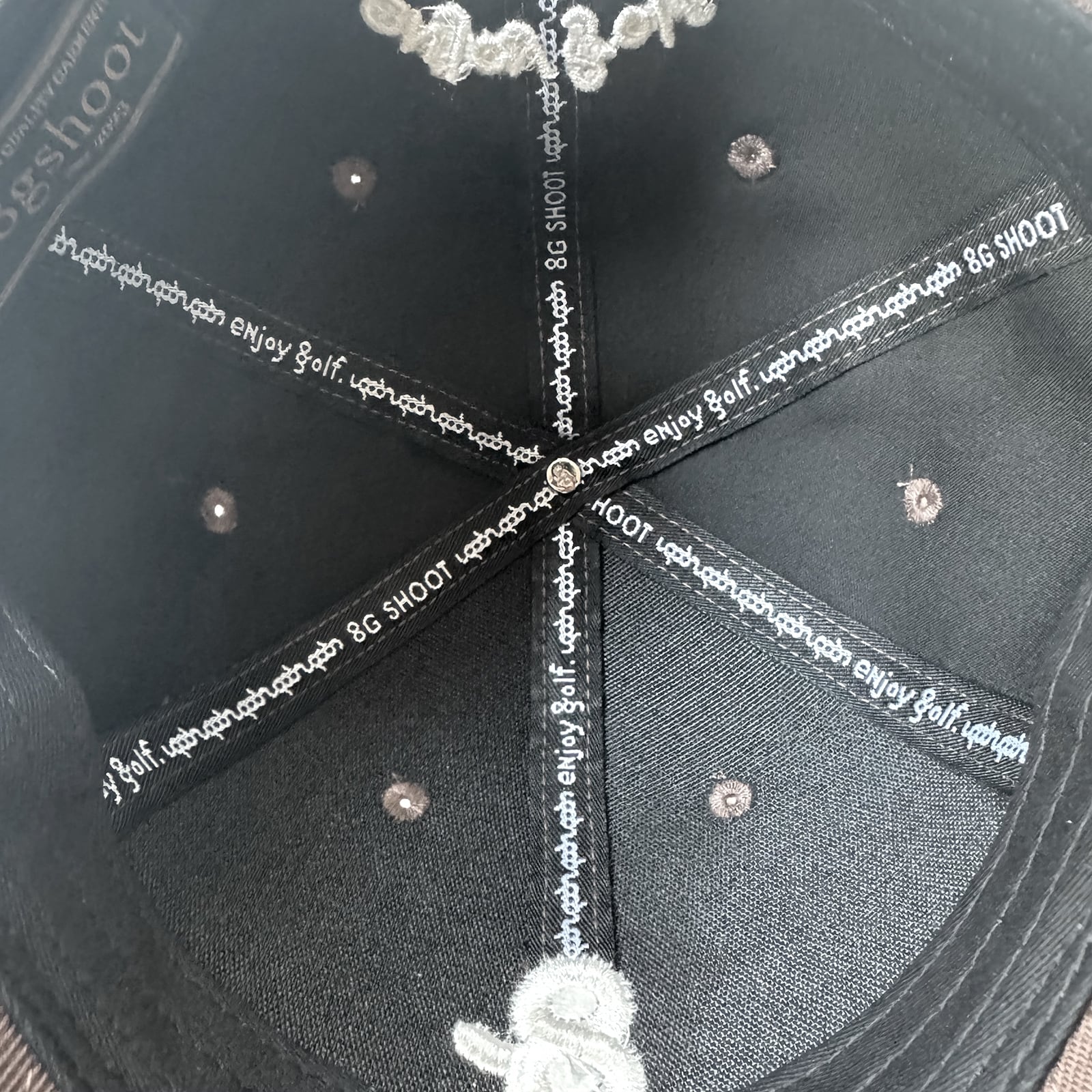 フロントに8G SHOOTのロゴと 、バックにはenjoy golf の刺繍の入ったクラシックベースボールキャップ。