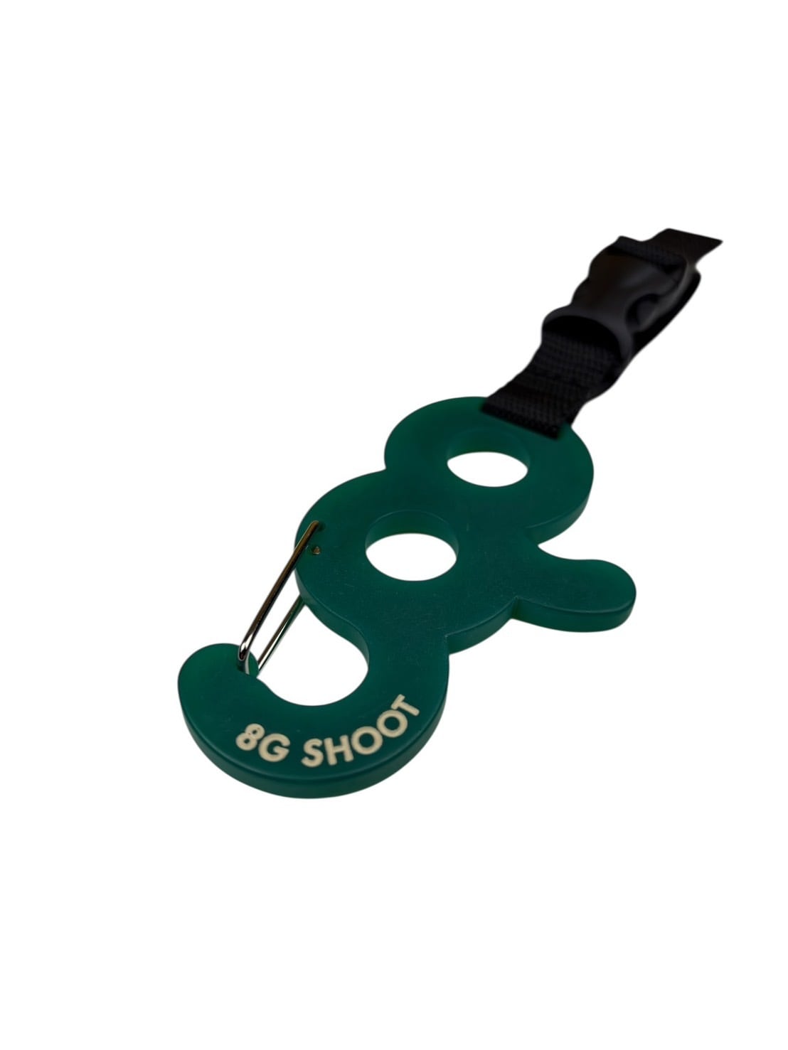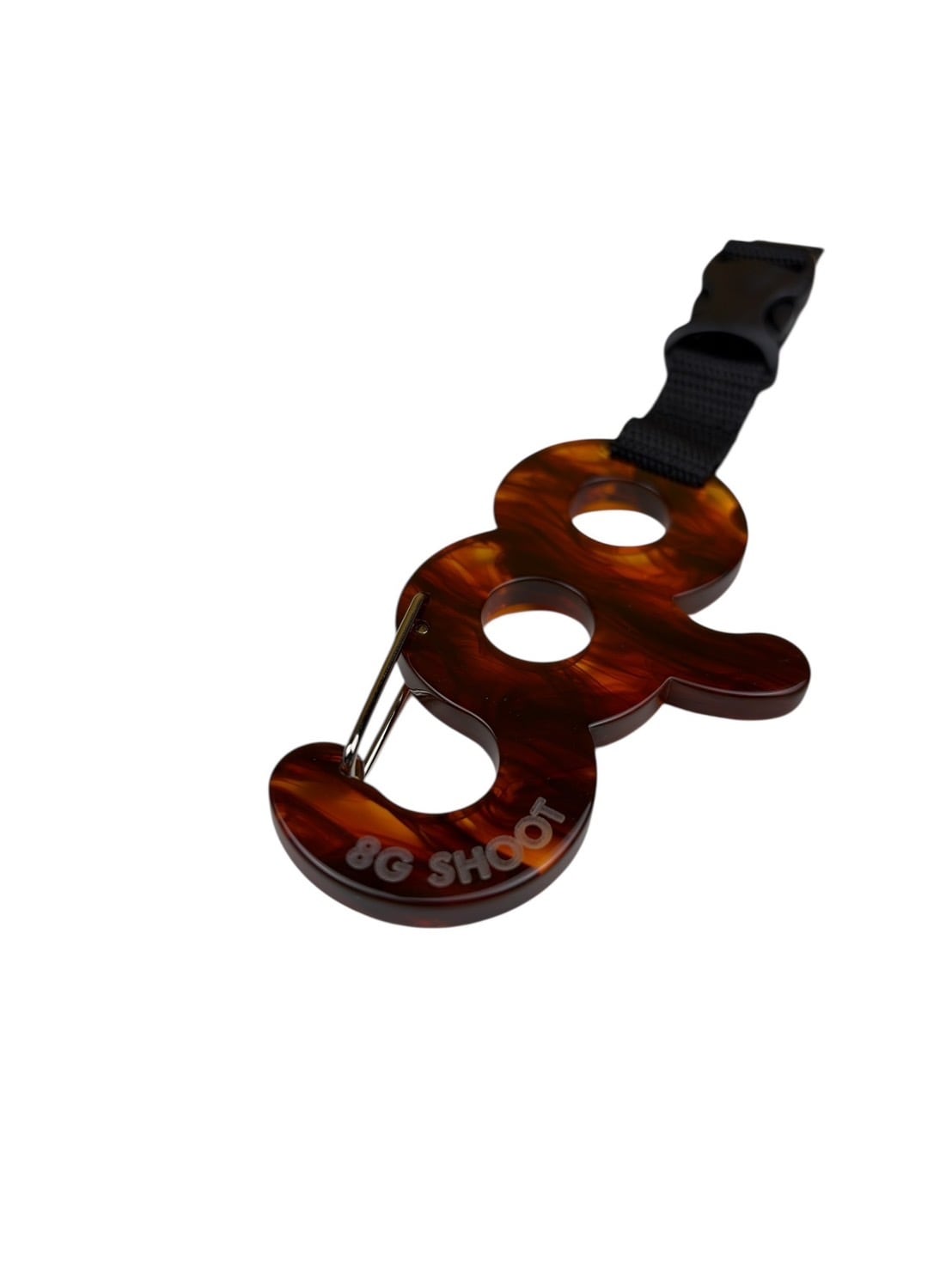 「8g shootのロゴをモチーフにした、オリジナルのカラビナ。