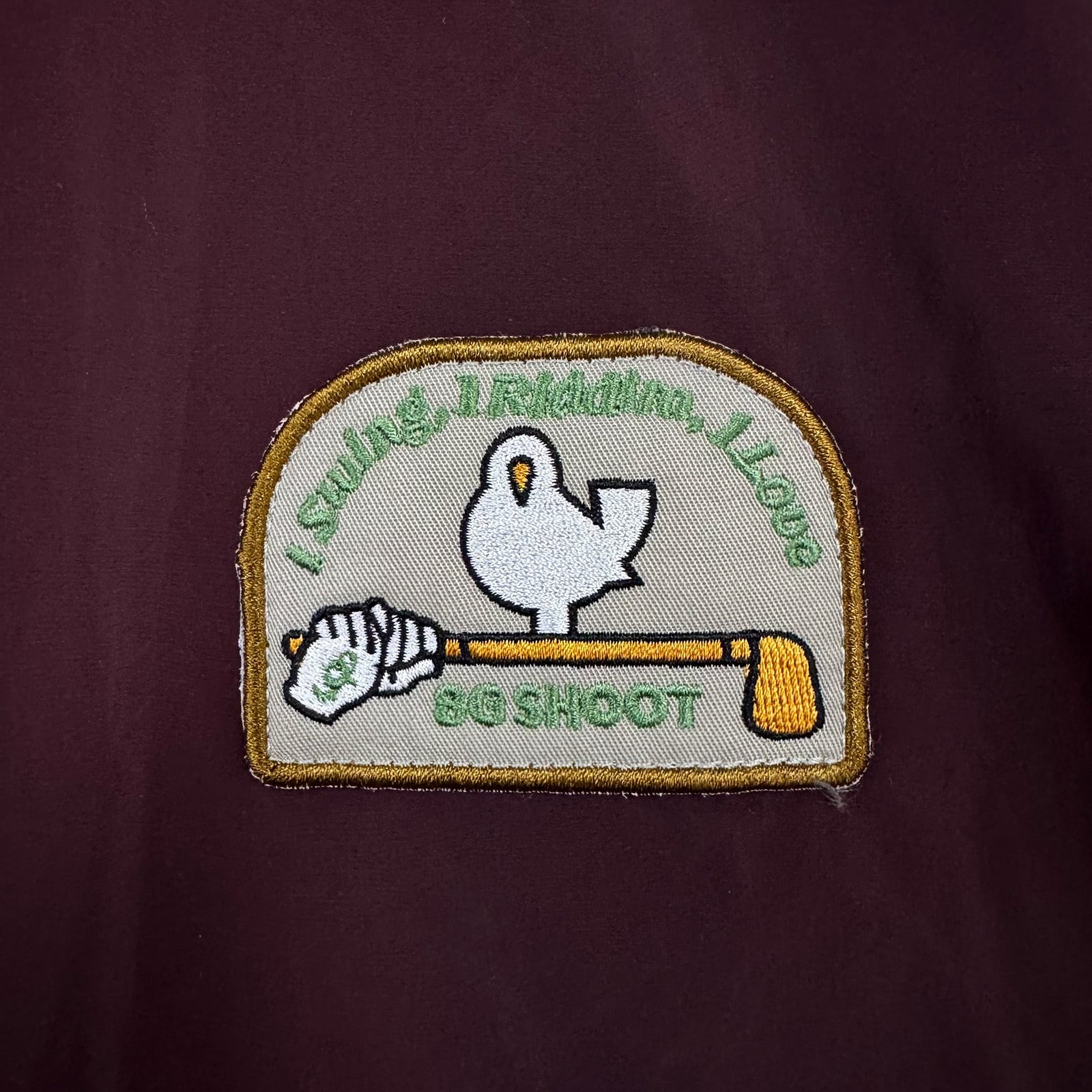 左胸の刺繍ワッペンや8G SHOOTの刻印入りのスナップボタン、パッチワーク刺繍で表現した背中のデザインなど