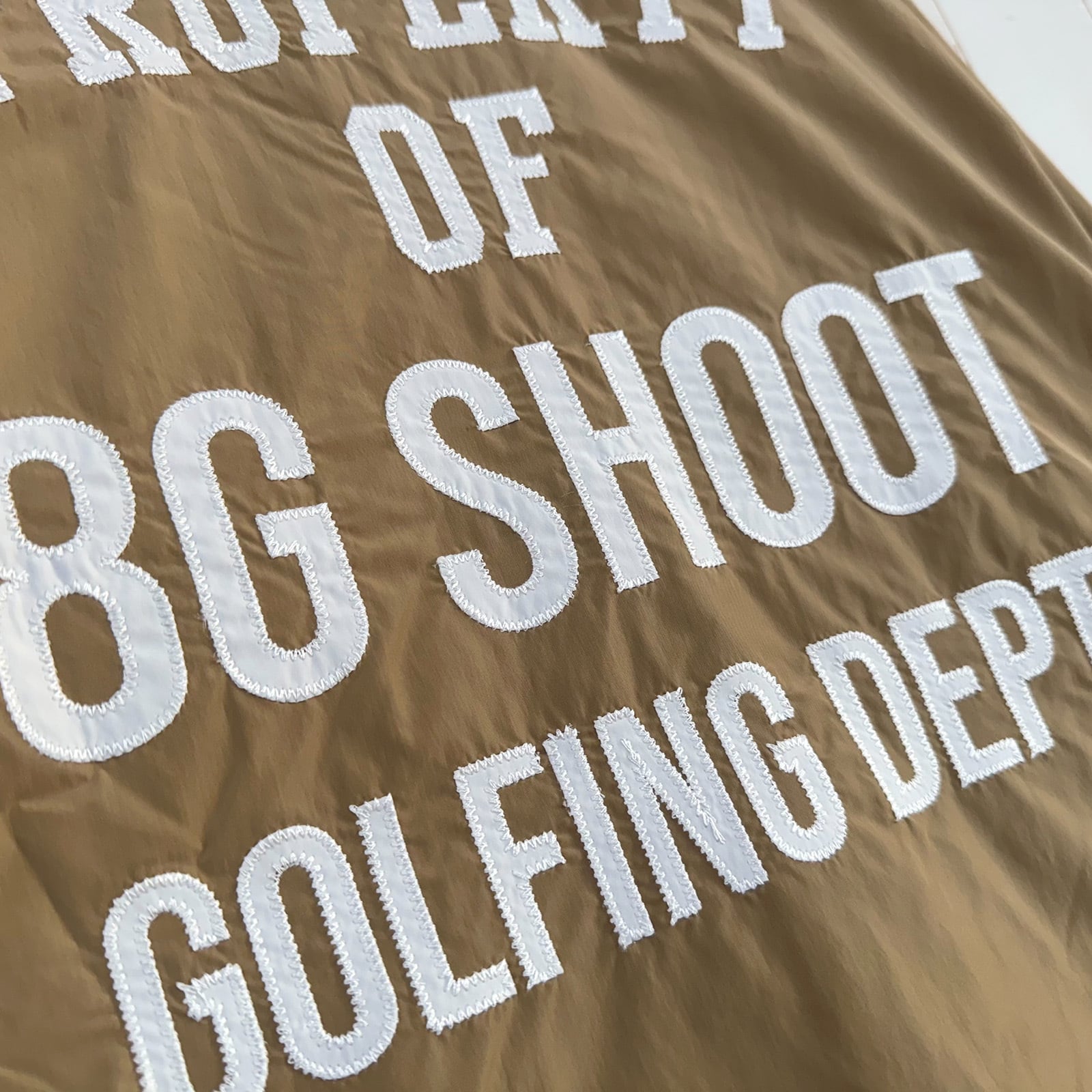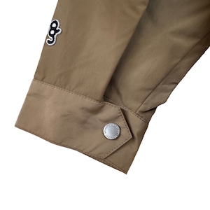 左胸の刺繍ワッペンや8G SHOOTの刻印入りのスナップボタン、パッチワーク刺繍で表現した背中のデザインなど