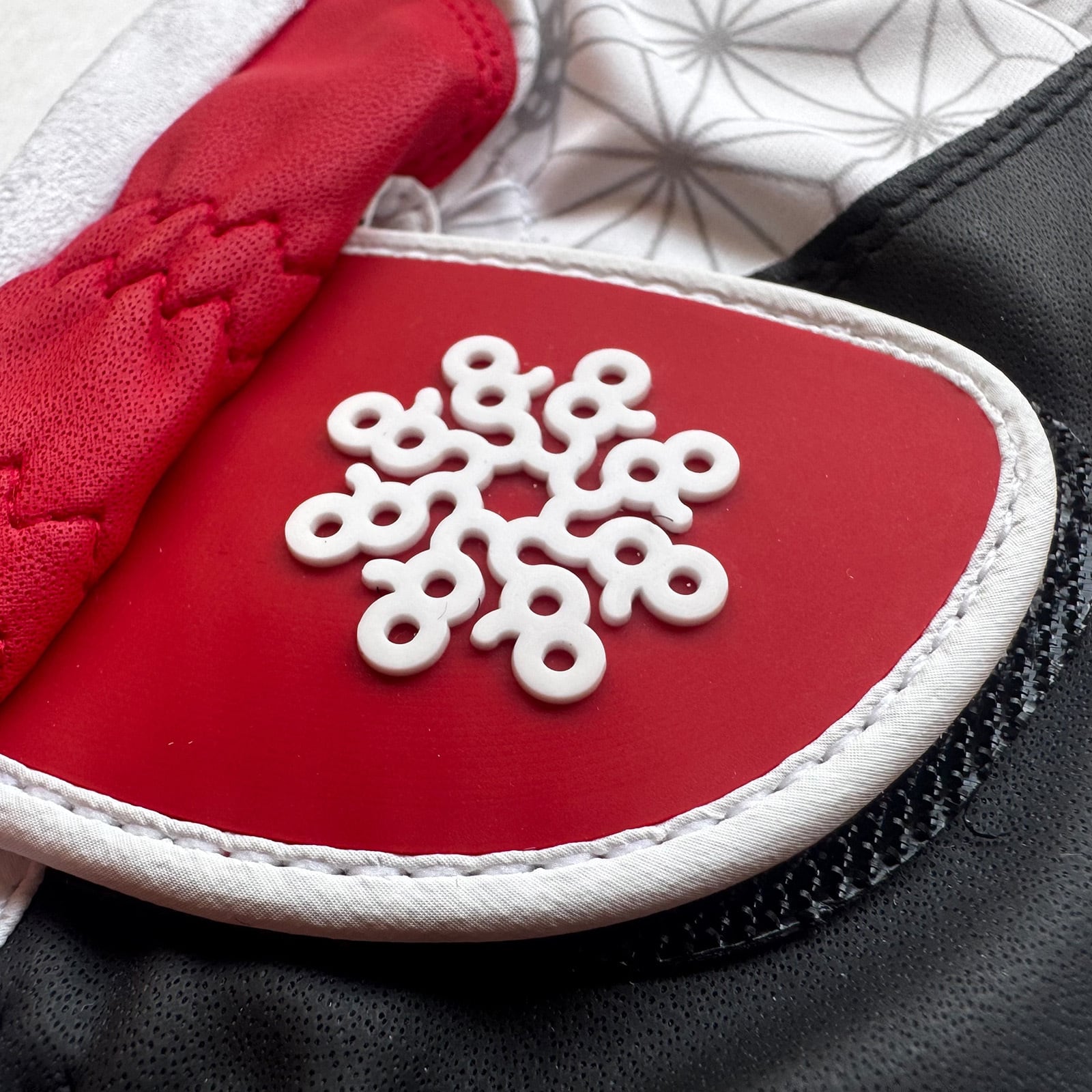手の甲側には、合成皮革とニット素材を組み合わせ、8G SHOOTオリジナルデザインをプリント。