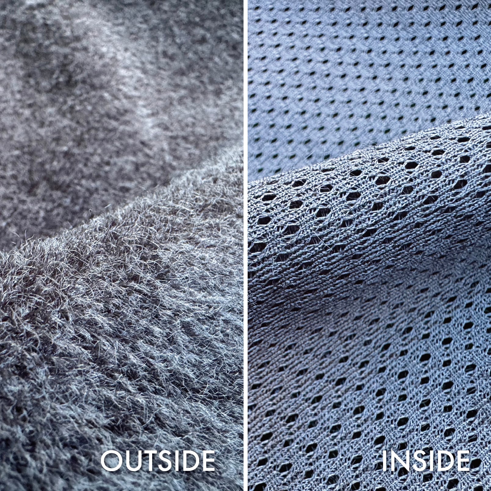 起毛面とメッシュ面を持つ構造により、保温性と快適性を両立。」