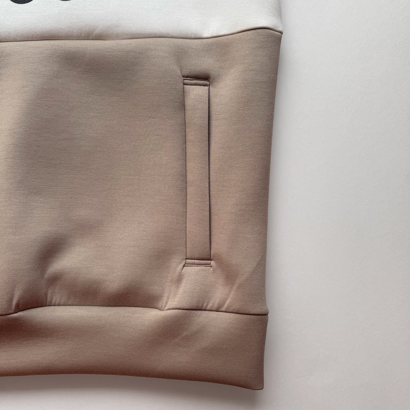 「バイカラーがおしゃれなハーフジッププルオーバー。