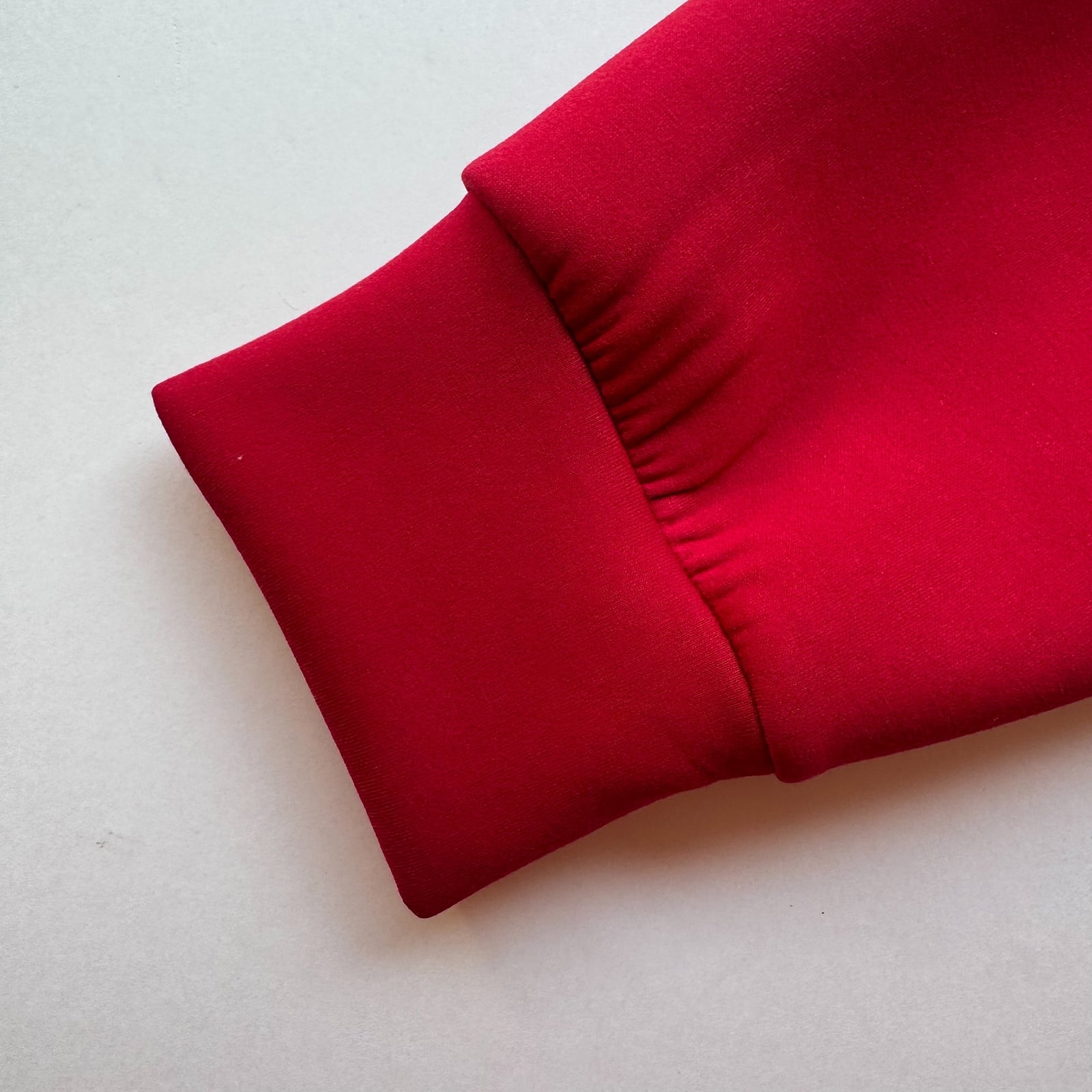 「バイカラーがおしゃれなハーフジッププルオーバー。