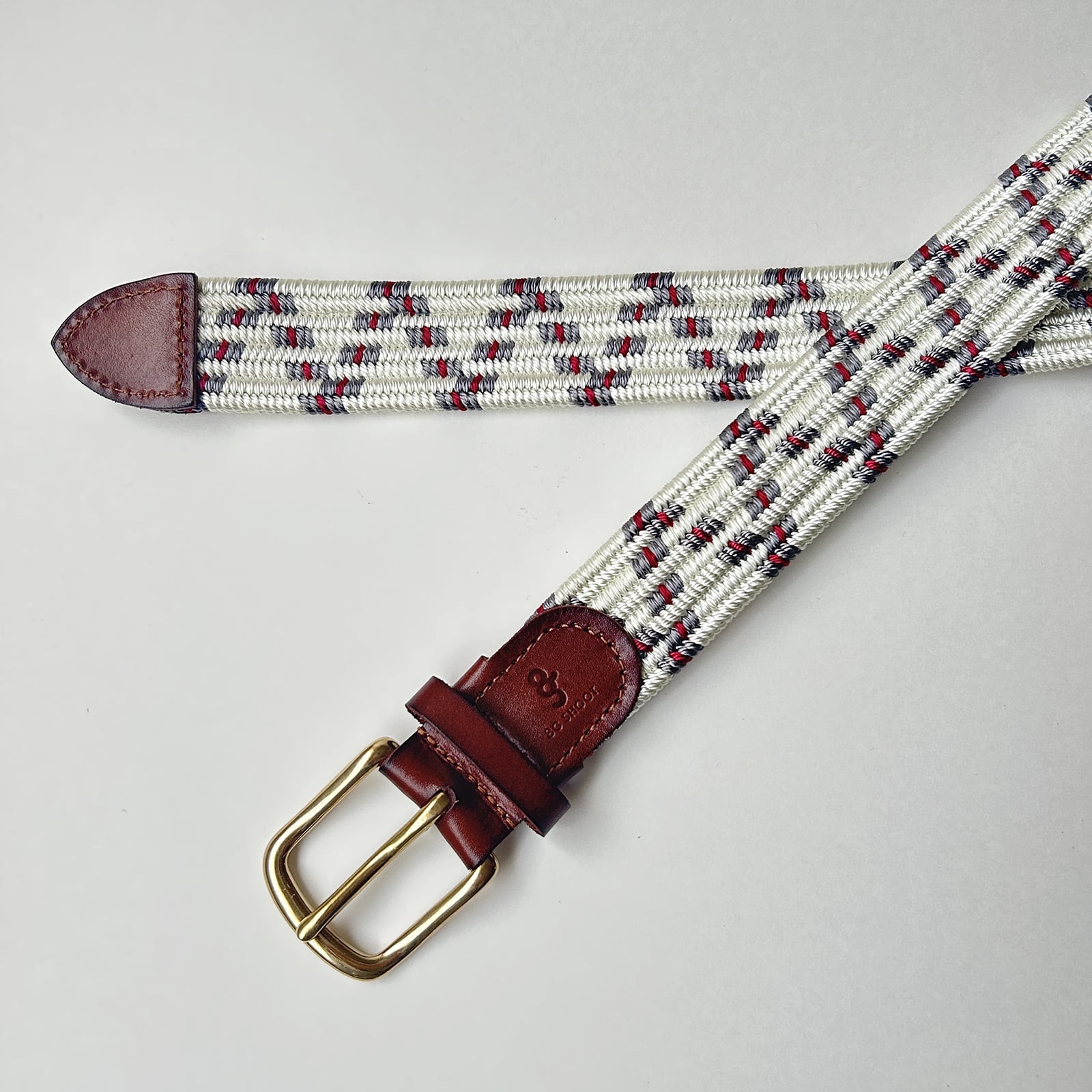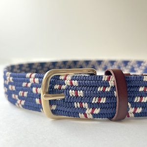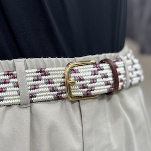 「ヴィンテージ感のあるバックルやレザー部分のロゴの刻印がクラシカルな雰囲気のメッシュベルト。