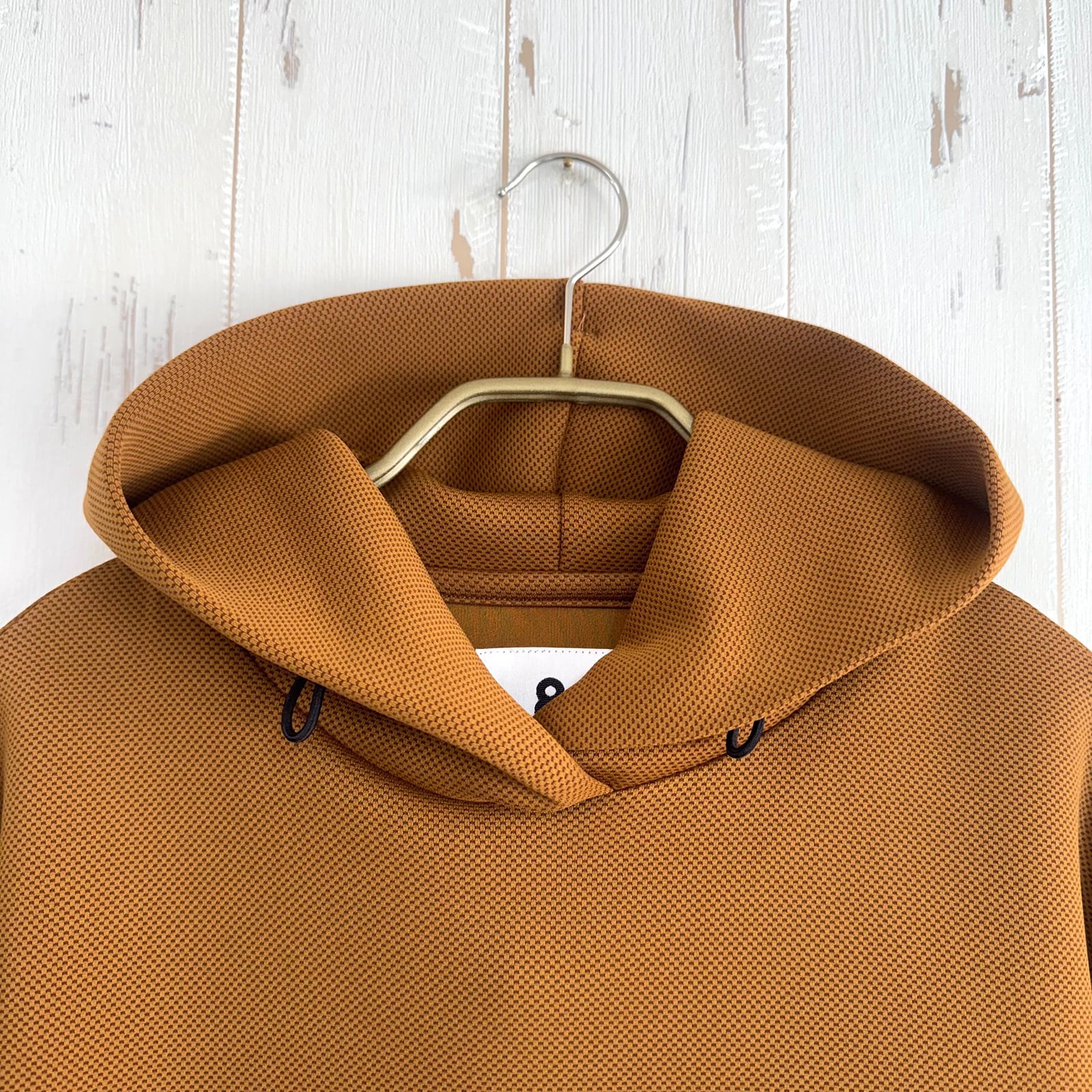 「肌触りの良いダンボール素材を使用したフーディ。