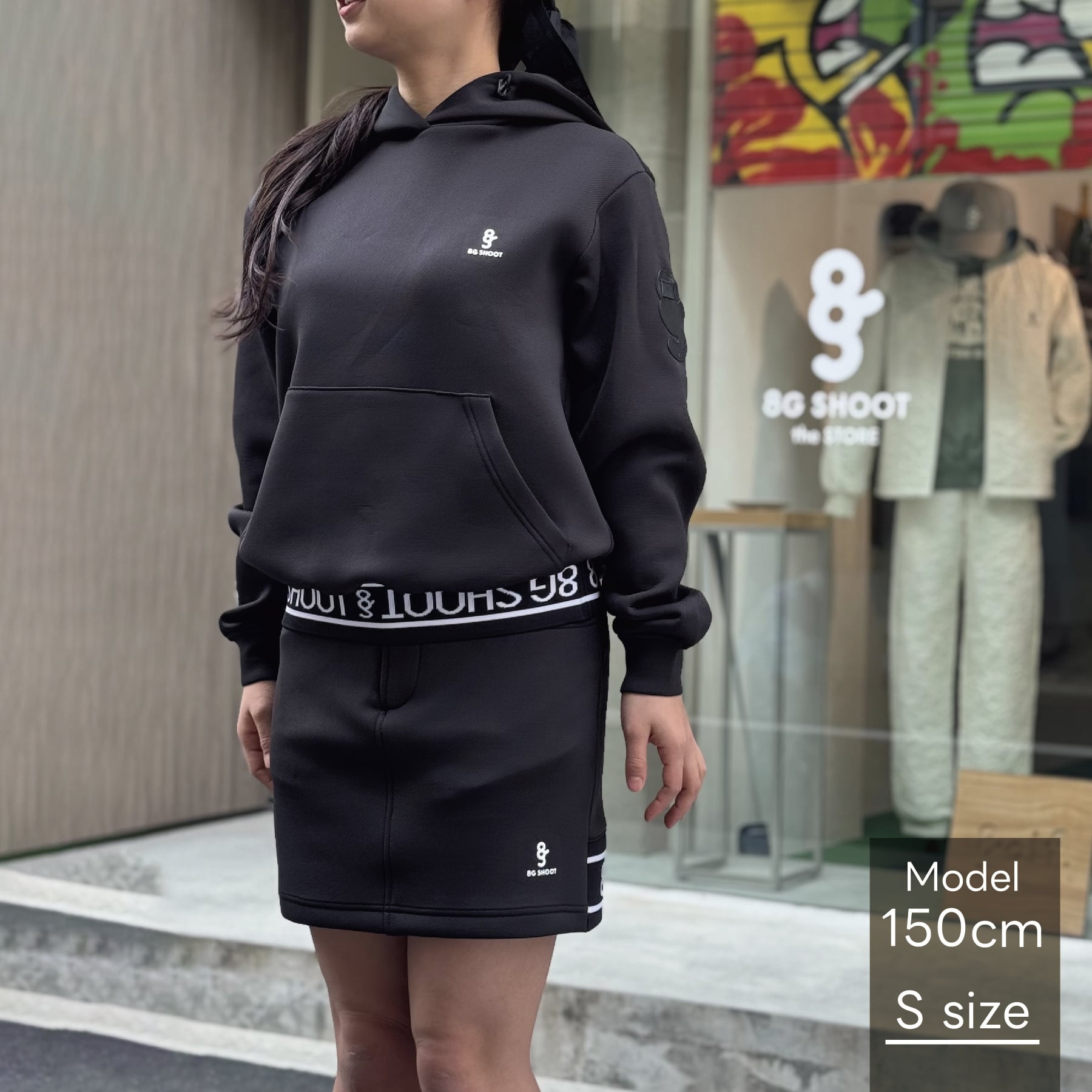 裾に8G SHOOTロゴを表現したジャガードリブ、ウエスト右後ろに別売のボールケースを装着できるテープを配しました。