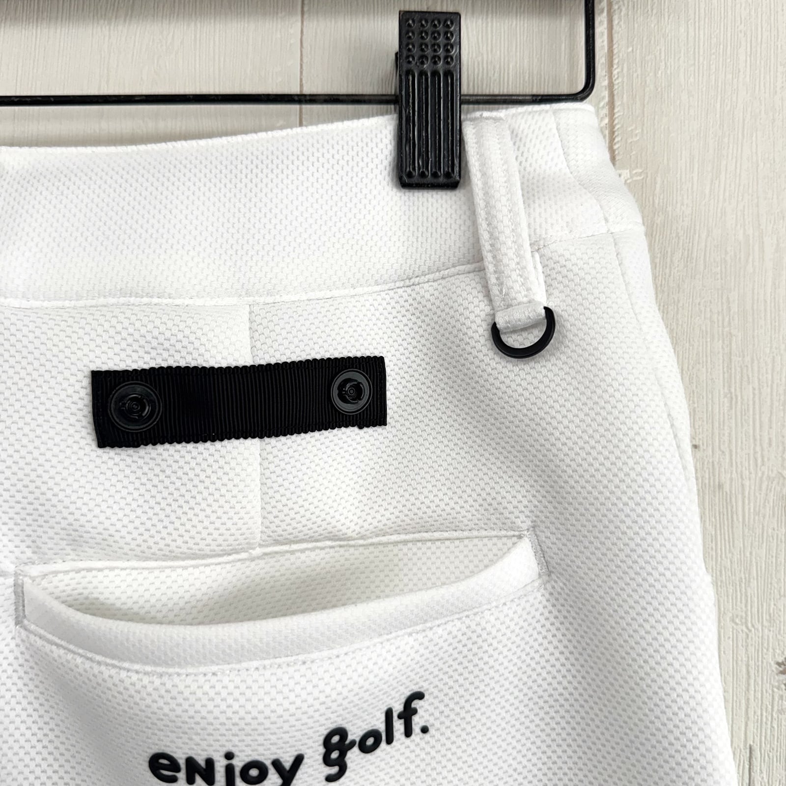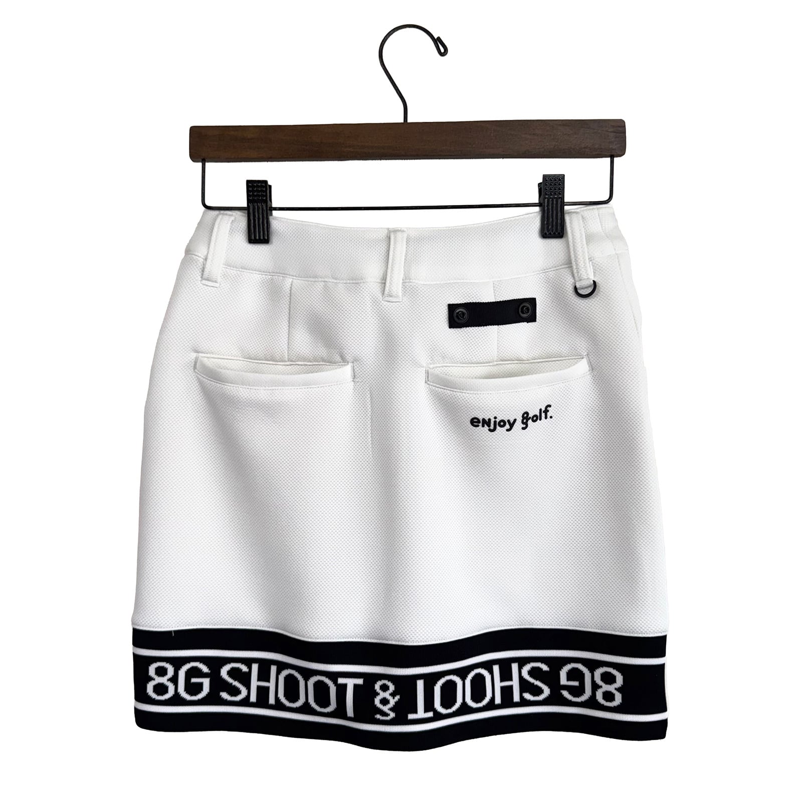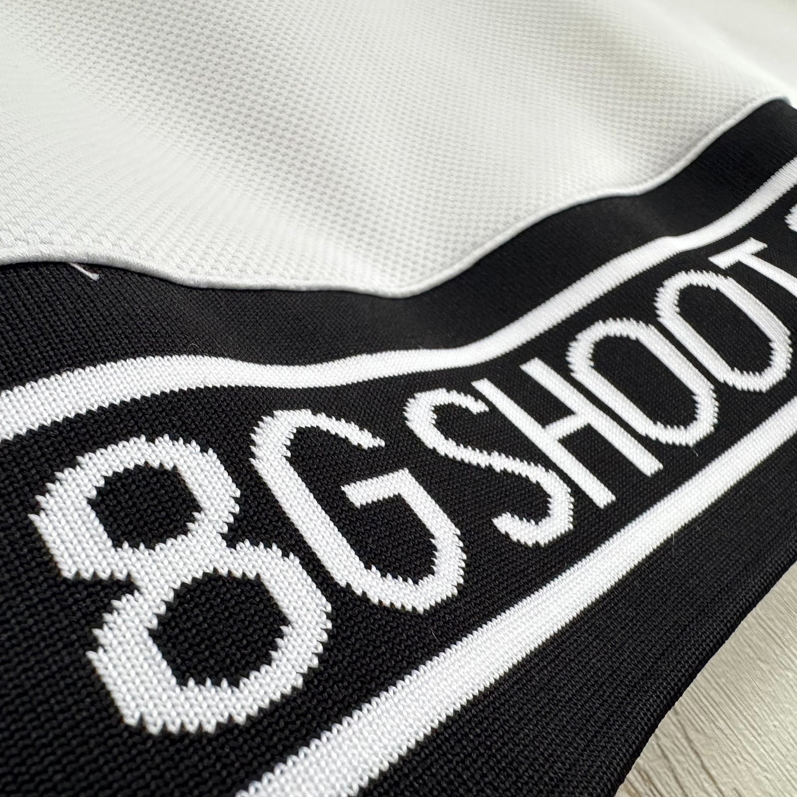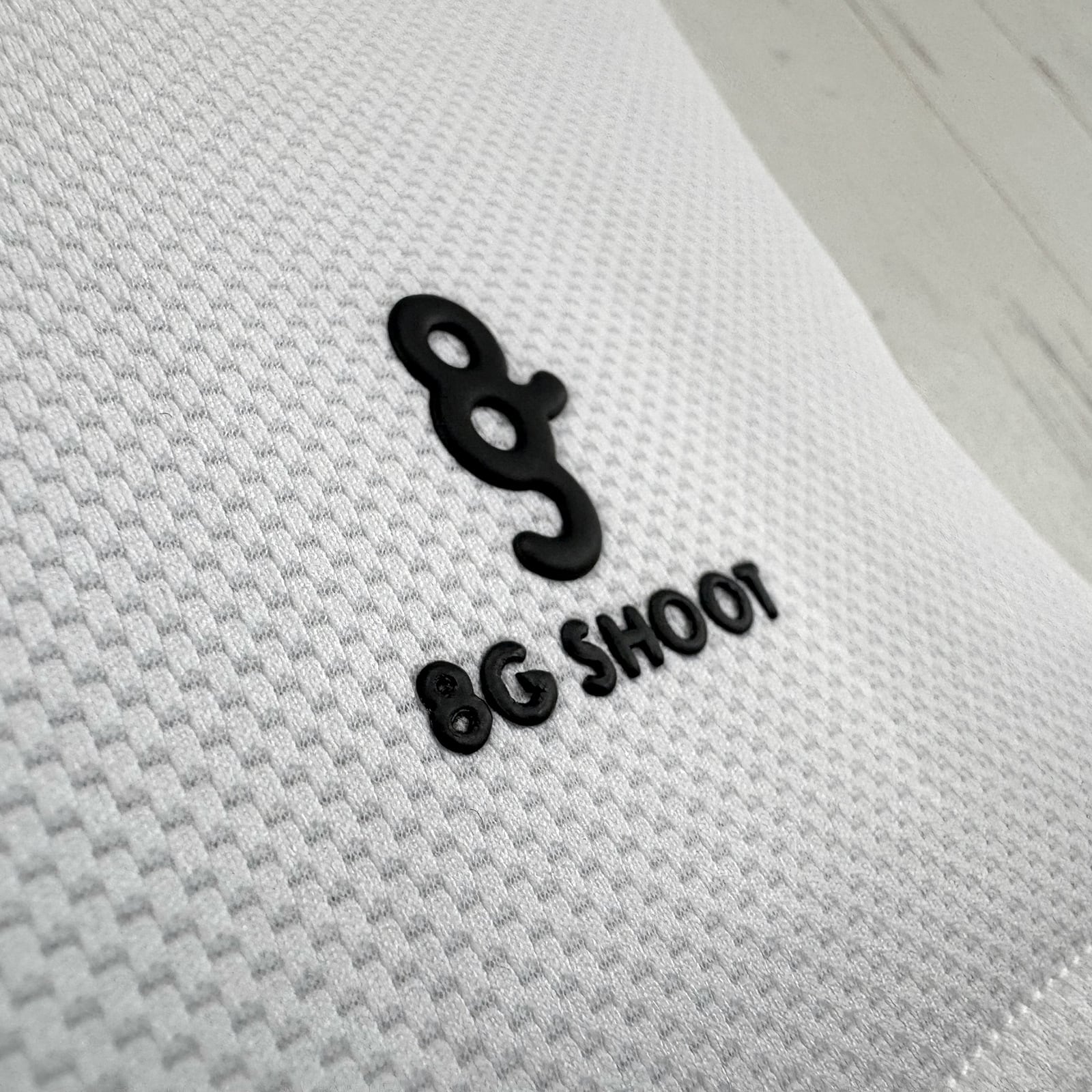 裾に8G SHOOTロゴを表現したジャガードリブ、ウエスト右後ろに別売のボールケースを装着できるテープを配しました。