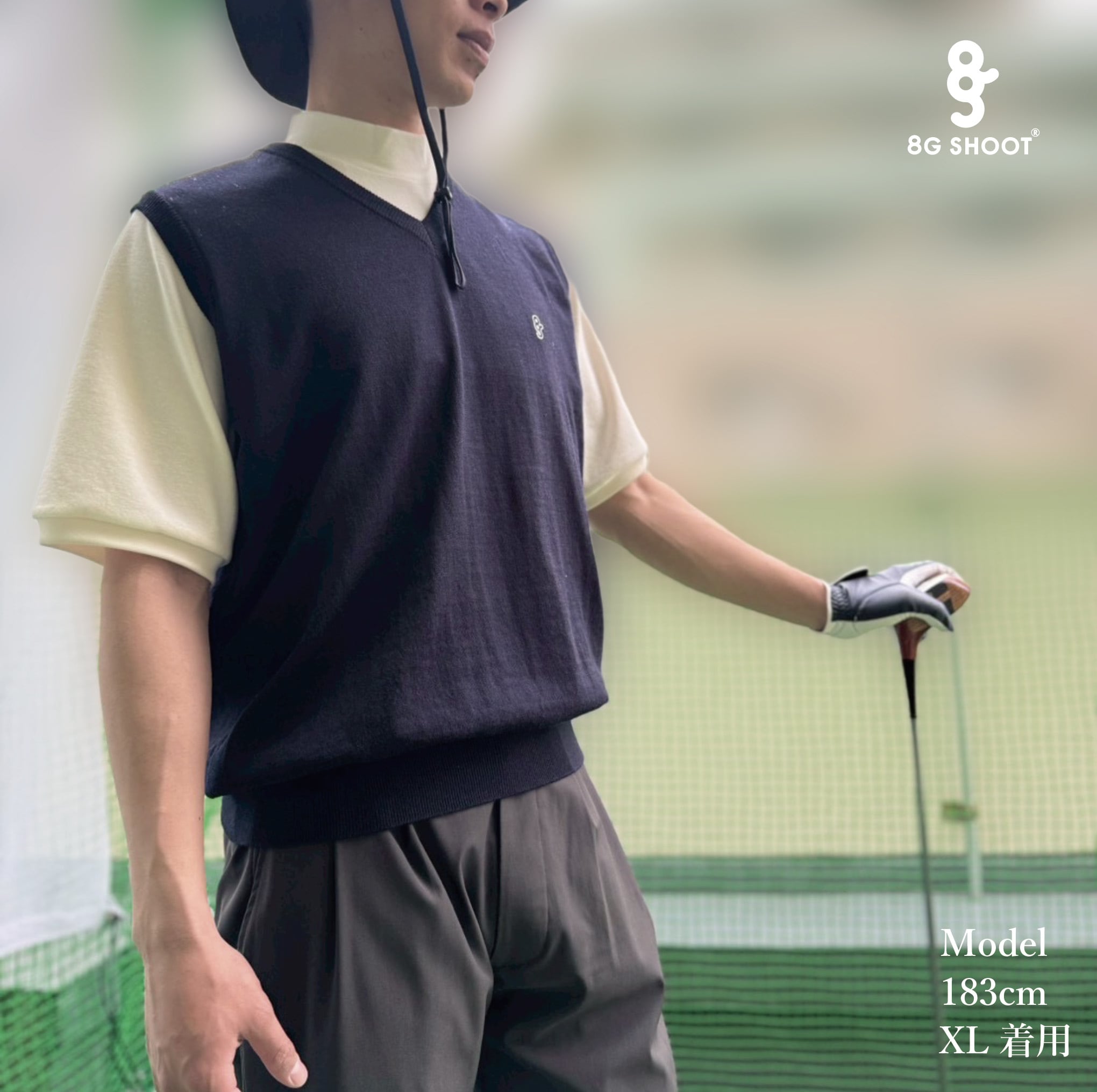 「シンプルでありながら、レトロクラシックな雰囲気のVネックニットベスト。