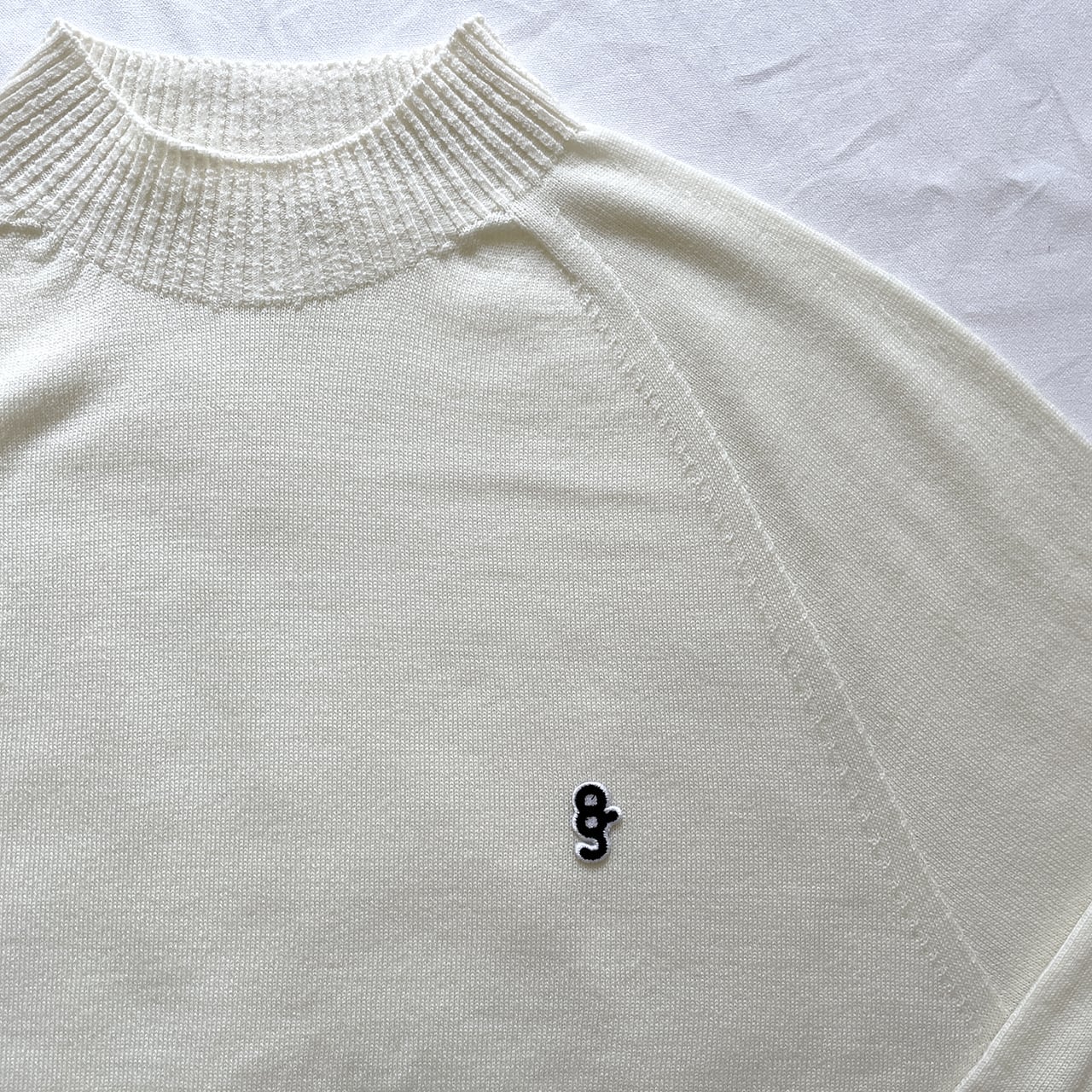袖はラグランスリーブ仕様、ホールガーメントで編み立てることにより、ピリングに強く、動きやすさと着心地を兼ね備えた仕上がりになってます。」