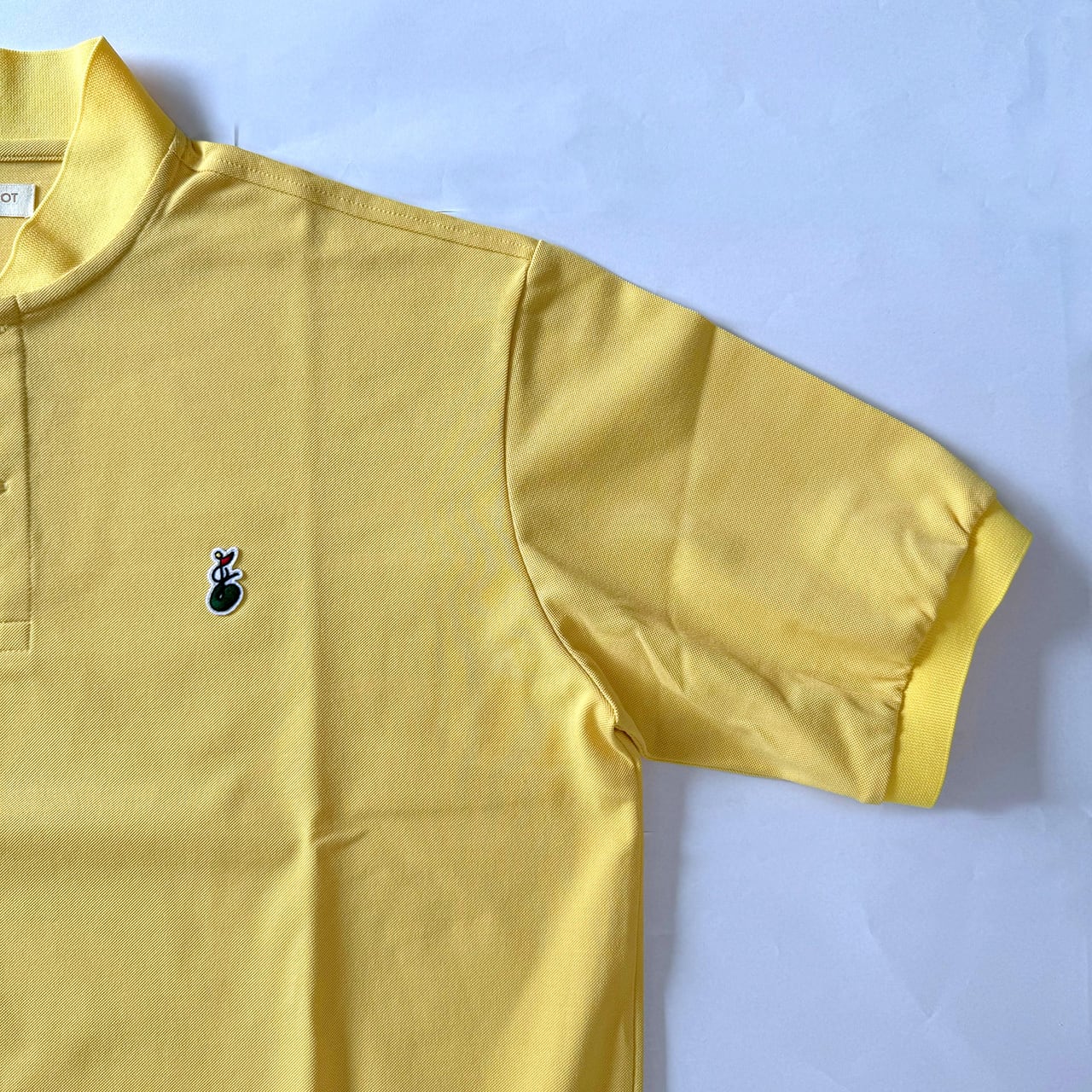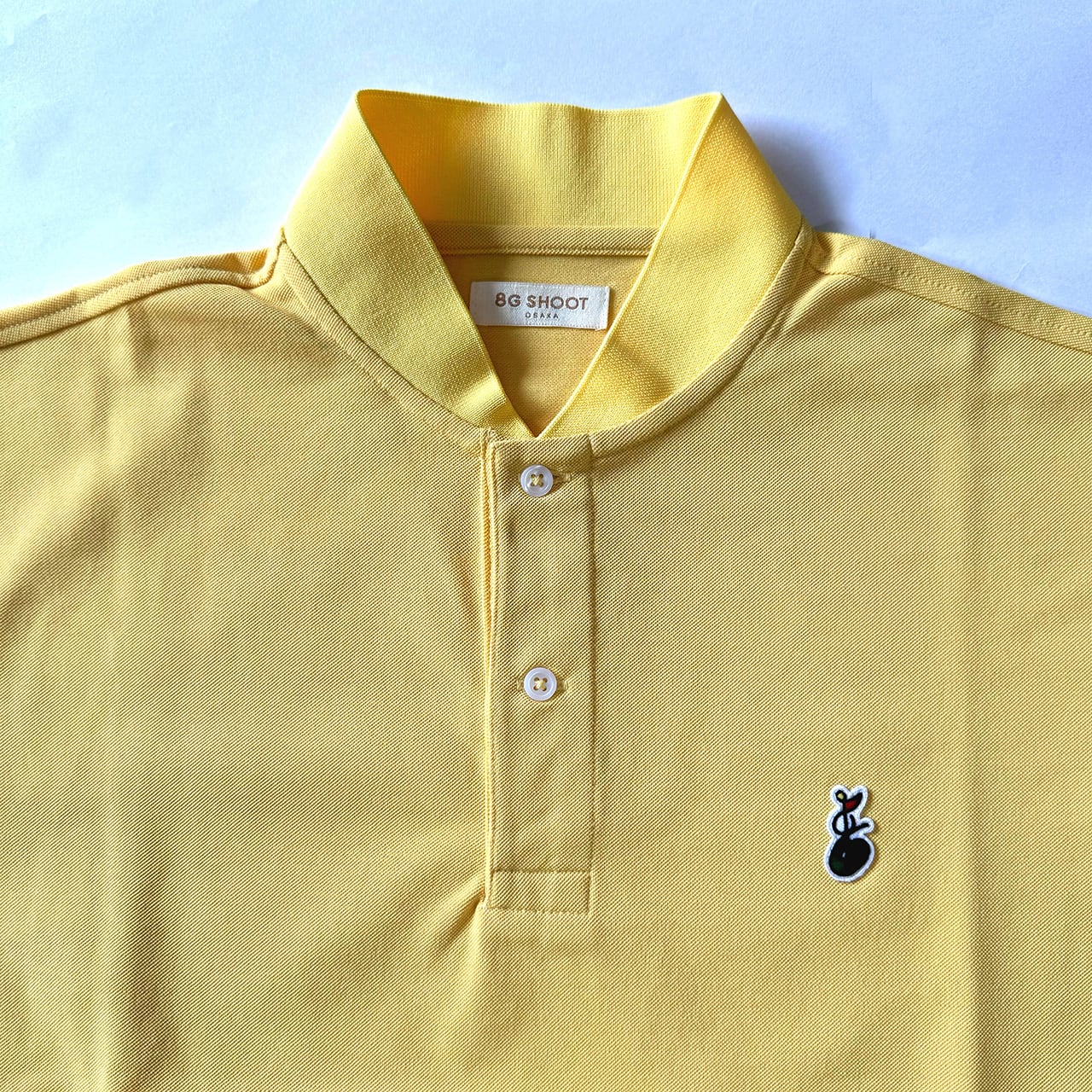 襟が高めのヘンリーデザインですので、もちろんゴルフ場のドレスコートにも対応してます。」